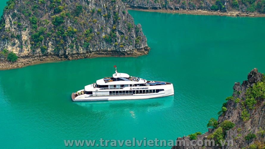 09h45 - 10h00: Đến Hạ Long & nghỉ ngơi tại phòng chờ của cảng tàu Quốc tế Hạ Long. Sau đó đội ngũ nhân viên của du thuyền Symphony sẽ chào đón Quý khách lên du thuyền khasm phá vịnh Hạ Long.