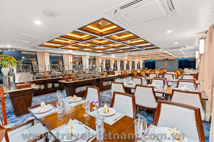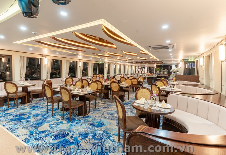 11h30 - 12h30: Ghé thăm hang Sửng Sốt. Quý khách di chuyển khỏi tàu ghé thăm hang Sửng Sốt - một trong những hang động lớn nhất tại vịnh Hạ Long với khung cảnh kỳ vĩ, huyền ảo. Trong lúc này, HDV sẽ giới thiệu cho Quý khách những thông tin về điểm đến tiếp theo cũng như hành trình khám phá Di sản.