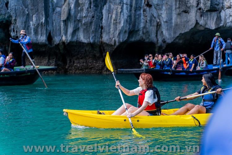 13h45 - 14h30: Tham quan hang Luồn bằng thuyền thúng hoặc chèo kayak.